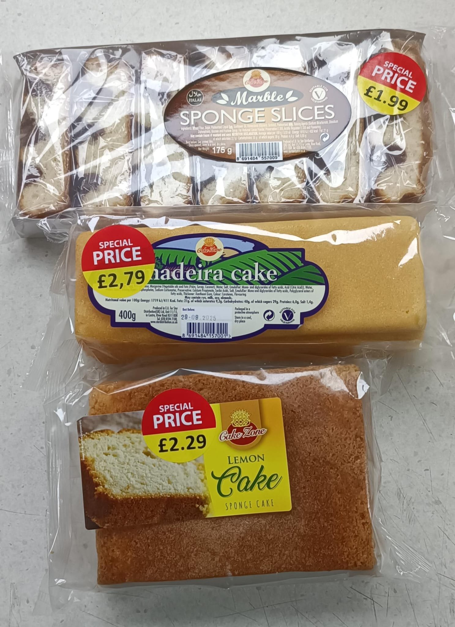 The perfect treat for your afternoon tea. Our Marble Sponge Slices are a beautifully swirled combination of light and dark sponge. Our classic Madeira Cake offers a simple, buttery delight. For a zesty twist, our Lemon Sponge provides a refreshing flavour. Enjoy them on their own or with a dollop of cream.